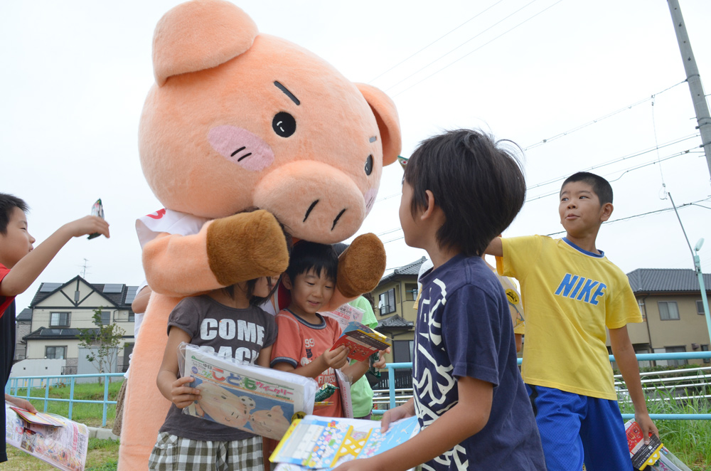 夏休み後半のラジオ体操がスタートしたと同時に、村瀬新聞店まなぶぅラジオ体操応援団も復活しました。今日は荒池下公園にお邪魔しました。ここでもまなぶぅは人気の的、どこでもまなぶぅのまわりは子供たちでいっぱいに、明日からもほかの公園にいきます。待っててね !!