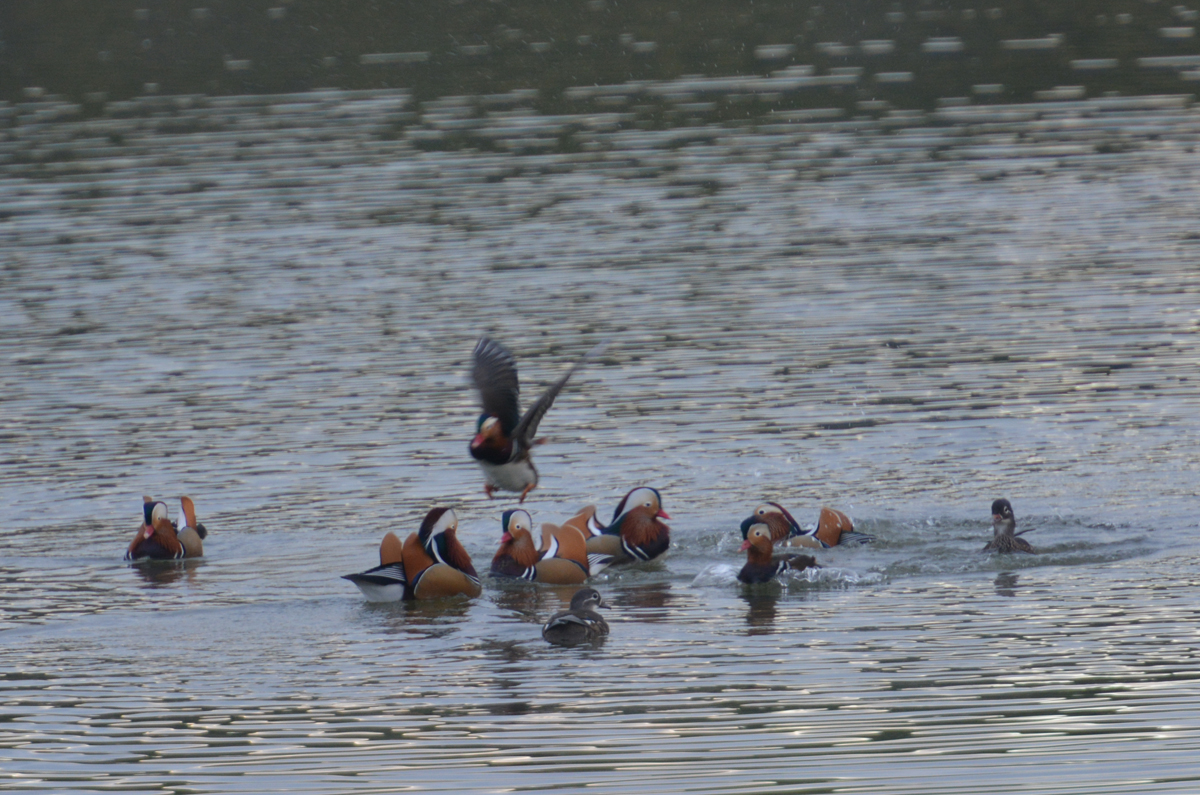 戯れるオシドリ