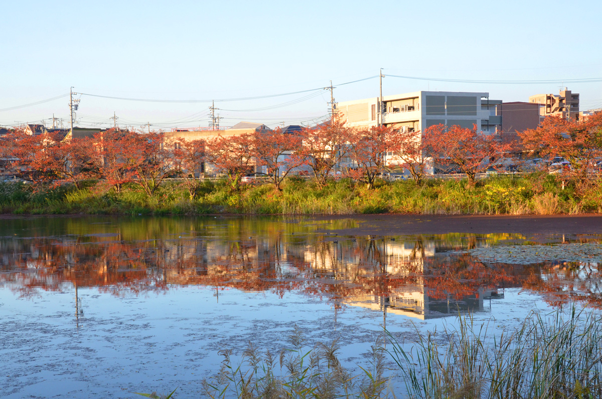 街中の公園や緑地でも紅葉が始まりました。公園ではサクラやカエデ・ナンキンハゼなど早く色づくものが多いので緑地より早めに紅葉が始まります。サクラは紅葉と同時に落葉が始りますので今が見頃ですね。これから12月ににかけてコナラ・アベマキ・モミジが色づき、紅葉の本番を迎えます。