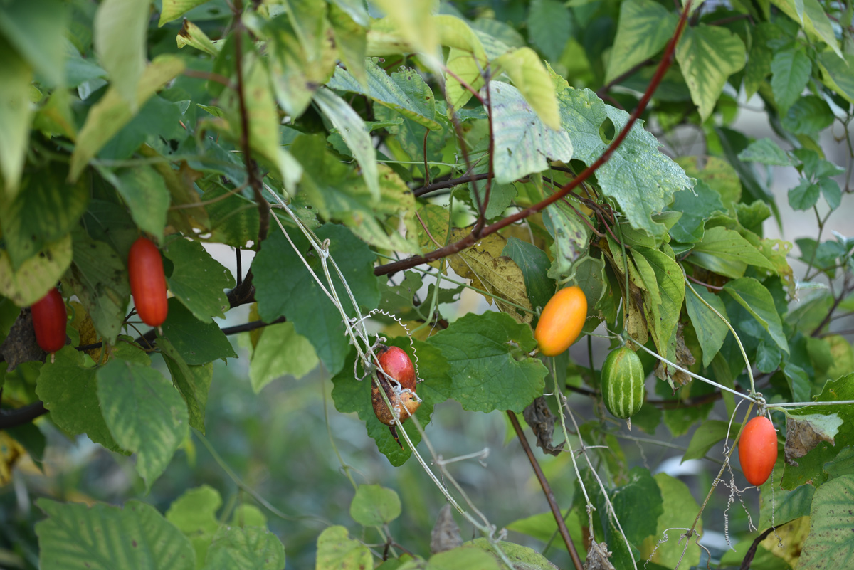 天白川などでカラスウリが色づき、目立つようになってきました。