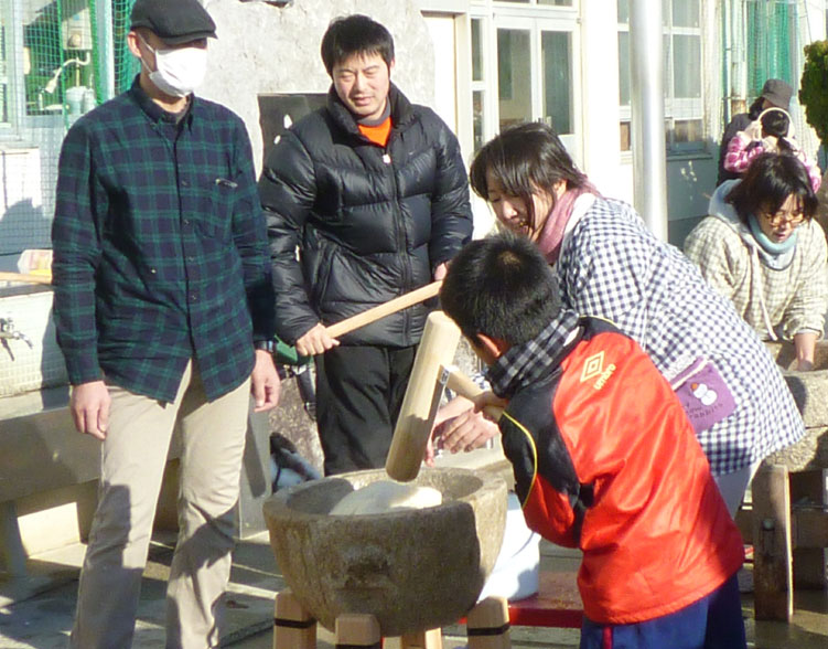 1月17日(土)平針小学校でPTAおやじの会、ばりばりとうちゃんず主催、ばりばりもっちつき大会が行なわれた。